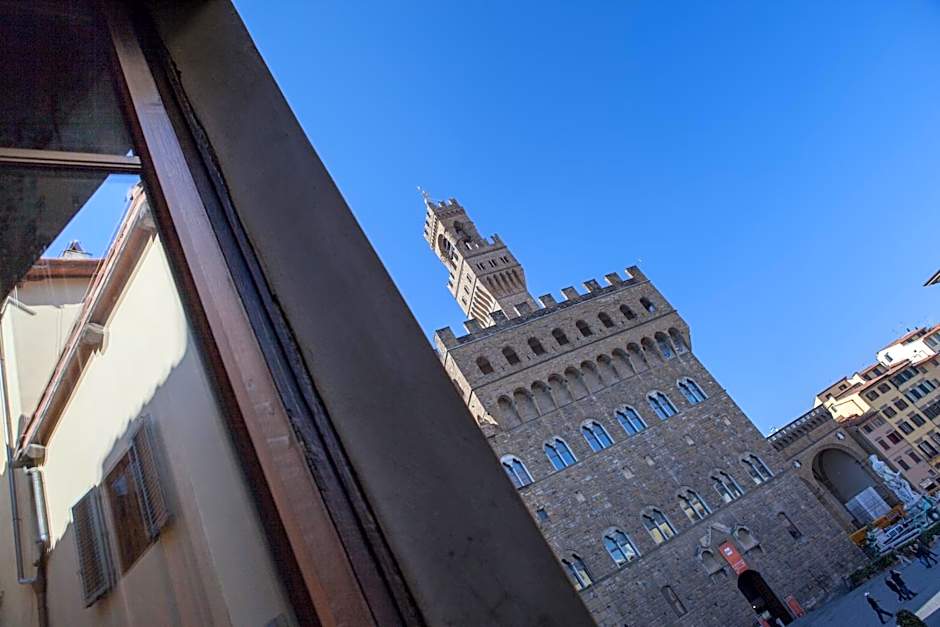 Featuring panoramic views of the Piazza della Signoria square, this elegant, air-conditioned room offers wooden floors, antique furniture and a marble bathroom with a large shower.